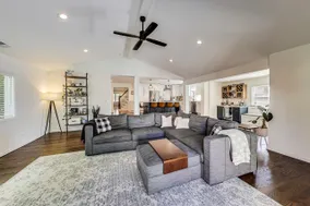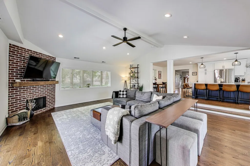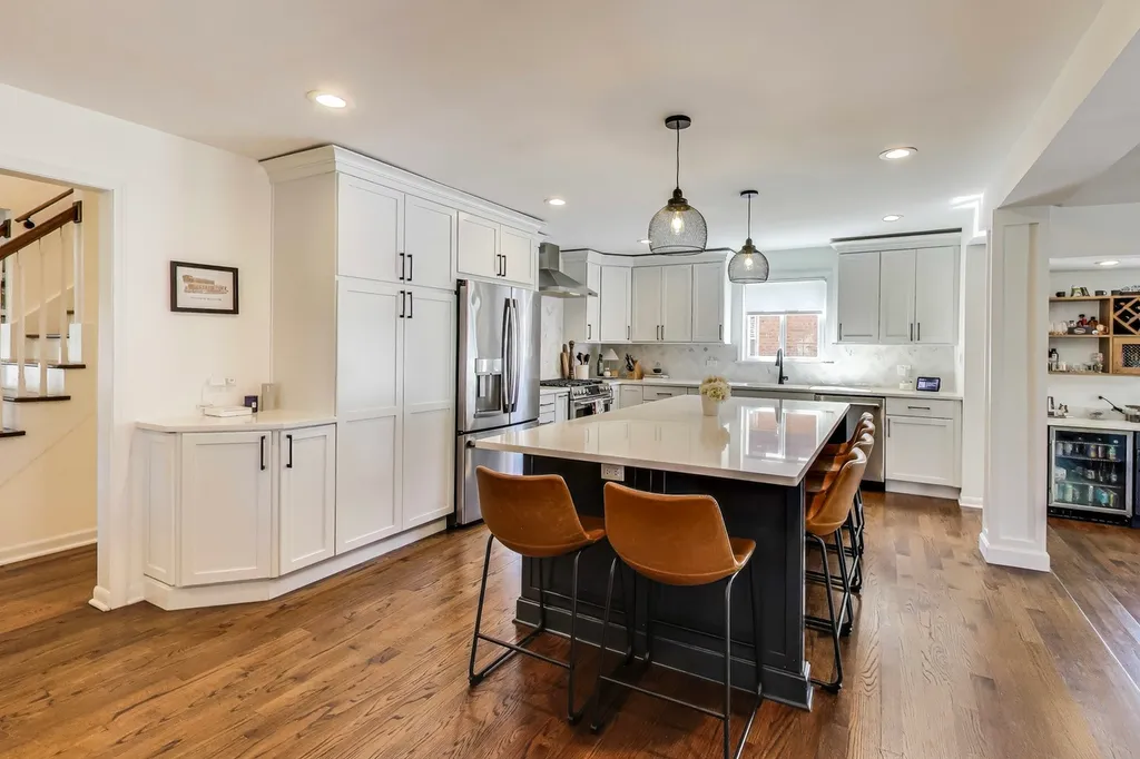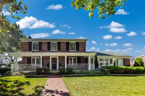 Come see this stunning Colonial home on a quiet street, perfectly set on a jumbo corner lot. Step onto the inviting front porch with views of both the front and side yards before heading inside. The first floor features a bright living room, private office with French doors, and a massive eat-in kitchen with a large island that opens to an expansive family room with vaulted ceilings, a dry bar with wine fridge, gleaming hardwood floors, and one of three fireplaces, this space is ideal for entertaining- complete with sliding doors to a fully fenced backyard and patio. Forgot to mention, there's a mudroom too! Upstairs you'll find three bedrooms, including a spacious primary suite with a beautifully remodeled bathroom. The large basement offers even more living space and abundant storage, while the 2-car detached garage comes equipped with EV charger capability. All this is an unbeatable location-- close to top schools, dining, and convenient transportation.